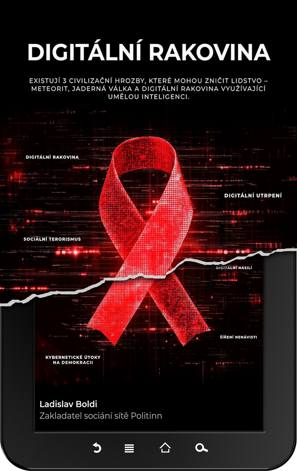 Autor ukazuje, že online svět se stal jedním z nejnebezpečnějších prostředí dneška – prostorem, kde chybí dostatečná právní i bezpečnostní ochrana digitální civilizace. Následkem toho se začíná rozpadat struktura demokracie a občanské společnosti, čelící digitálnímu násilí, sociálnímu terorismu i rostoucímu informačnímu chaosu.